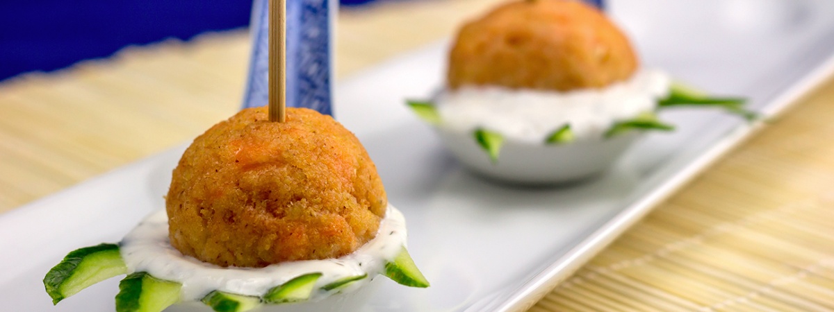 Isecite svež krastavac na tanke trakice (ljuštilicom za kromir) i blago začinite po ukusu, a potom naređajte ćuftice preko njega i prelijte sosom. Ukrasite ili svežom mirođijom ili seckanim vlašcem.