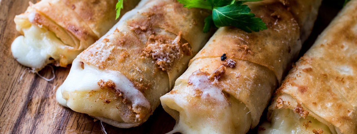 Prve dve kore poprskajte samo vodom i uljem, treću premažite sa ½ Moja Kravica kisele pavlake. Zatim, na narednu koru poređajte 150 g seckane šunke, petu koru premažite sa 100 g kečapa i pospite origanom, na šestu stavite 250 g Moja Kravica Kuhinjica Sitnog sira, a na poslednju, 300 g prodinstanih pečurki. Tako naslagane kore treba uviti u rolat. Potom napravite jos jedan takav.