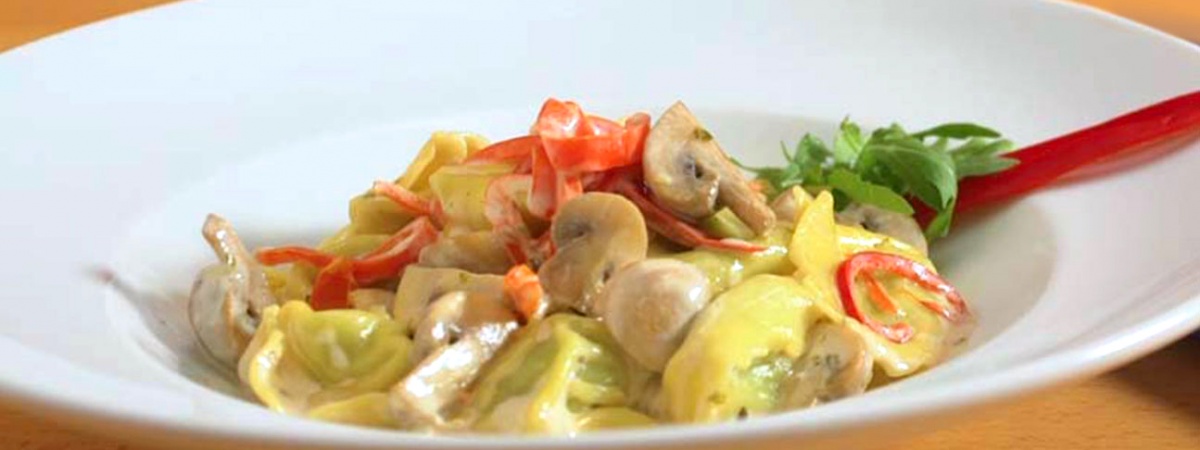 Kad je sve skuvano, torteline stavite u činiju i prelijte ih smesom od paprika, šampinjona i pavlake. Po želji, pospite origanom.